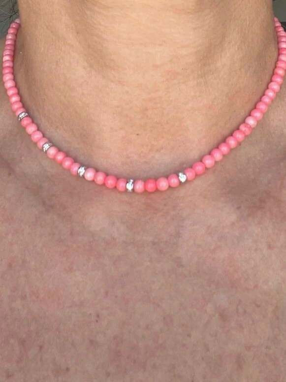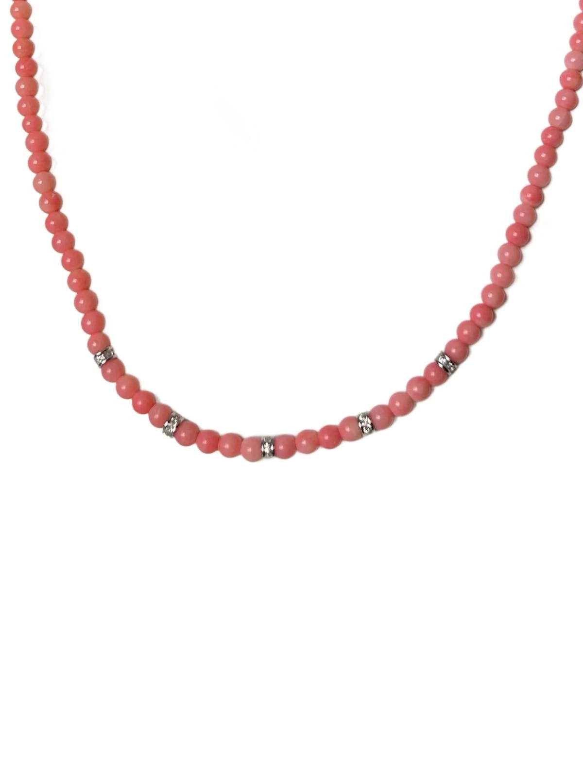 Colar Coral reconstituído e zircônia com alongador Prata 925 Ródio