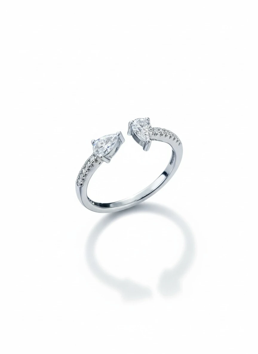 Anel 4 zircônias gota Prata 925 Ródio