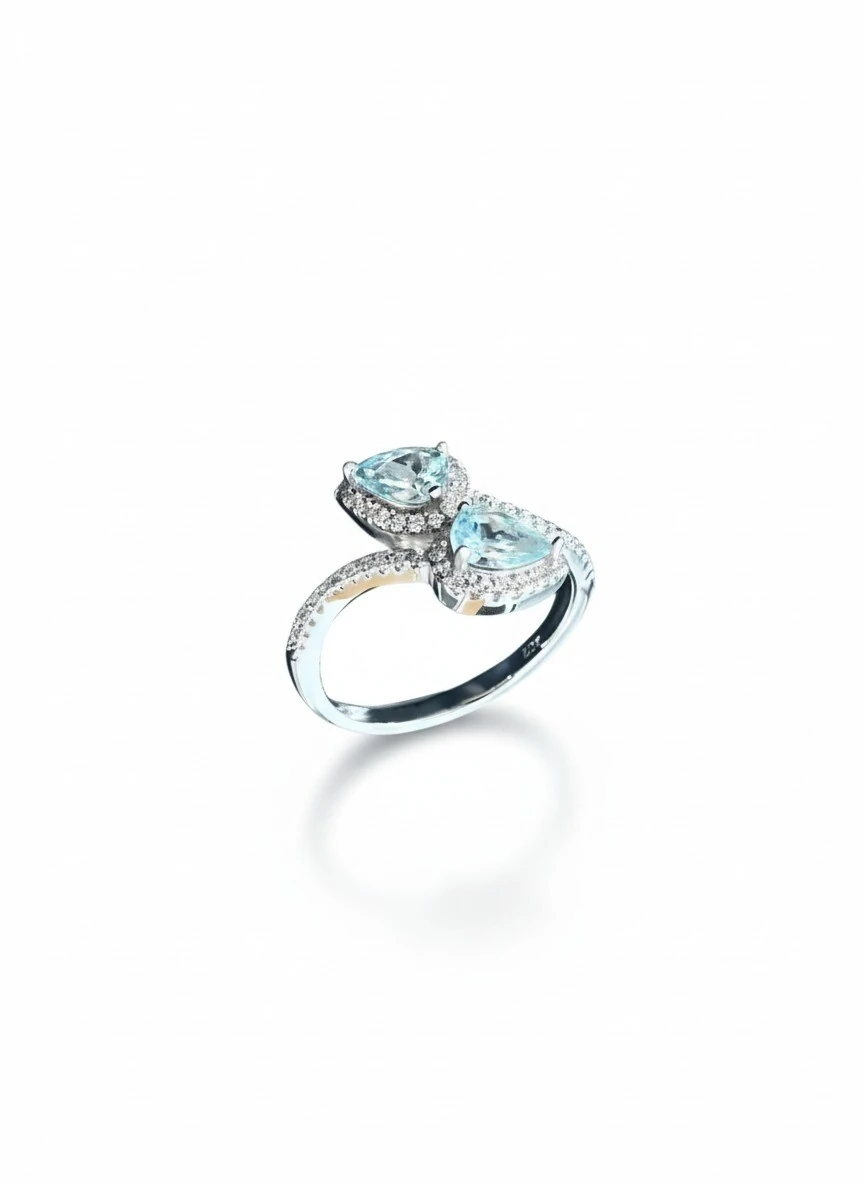 Anel Onda Gota zircônia Prata 925 Ouro 18 k