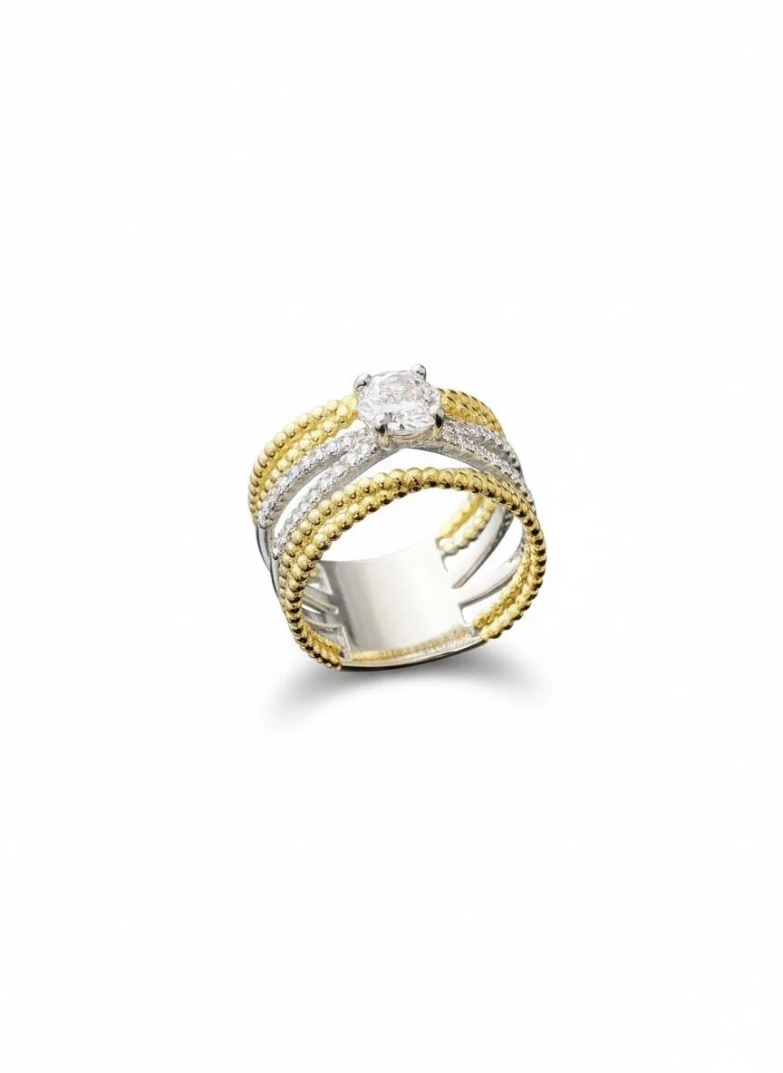 Anel X com solitário Prata 925 Ródio e Ouro 18 k