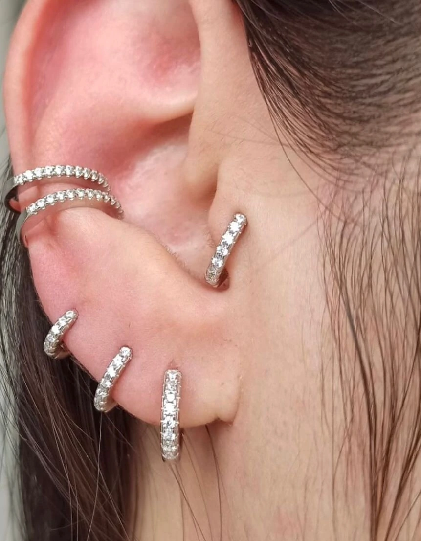 Brinco Trio 3 argolas zircônia Prata 925 Ródio