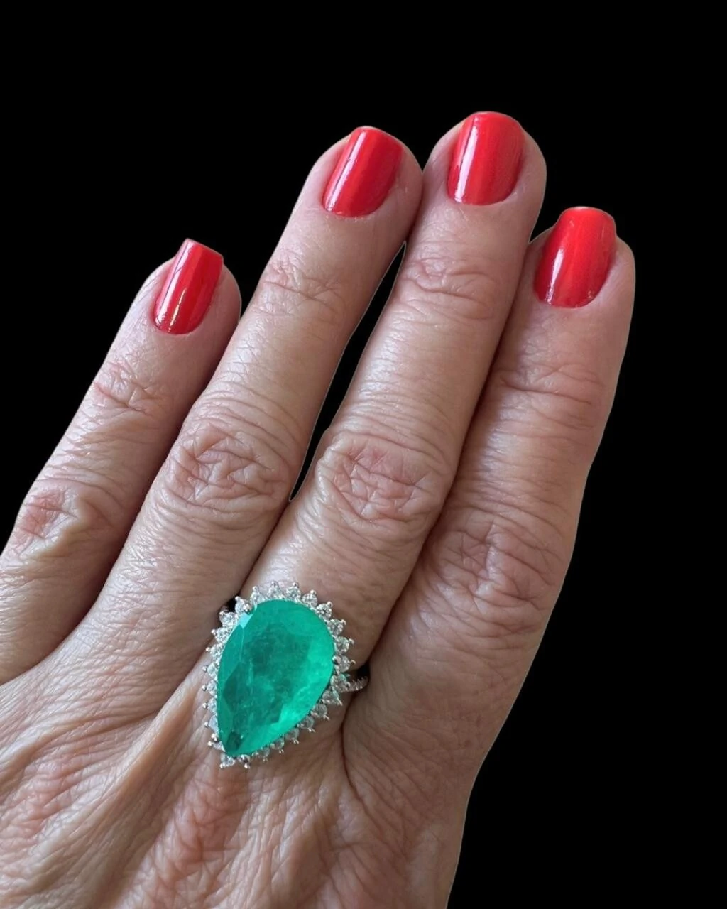Anel Gota esmeralda e zircônia G Prata 925 Ródio