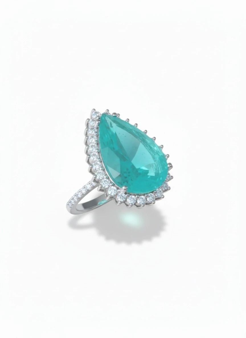 Anel Gota turmalina e zircônia G Prata 925 Ródio