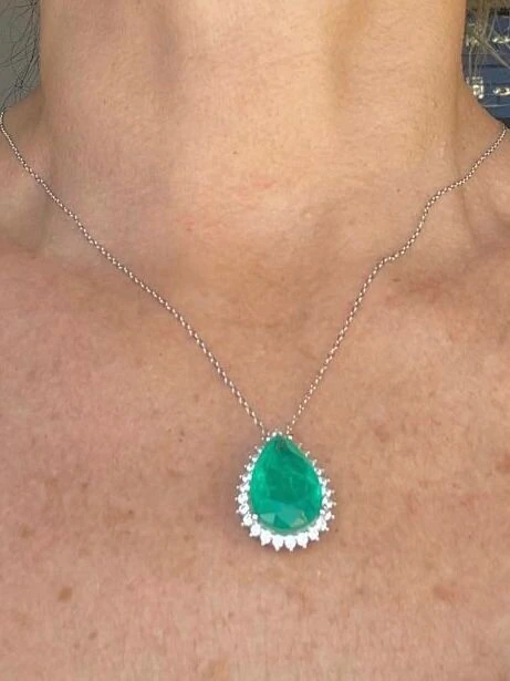 Colar Gota esmeralda e zircônia G Prata 925 Ródio