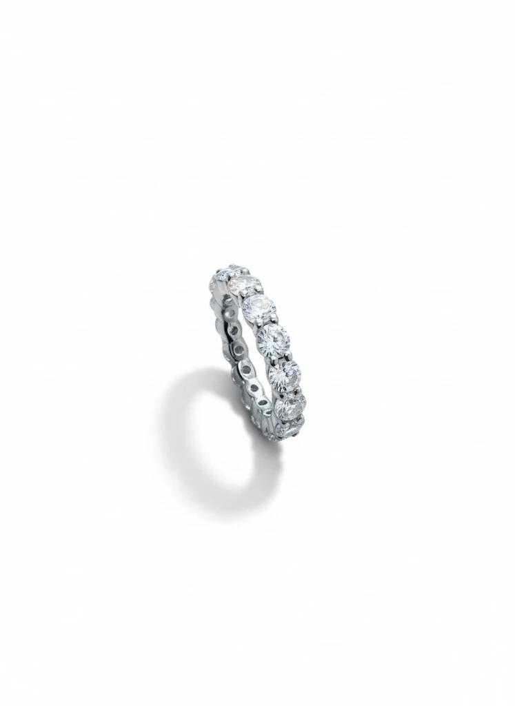 Anel Solitário 2 em 1 aro cravejado Prata 925 Ródio