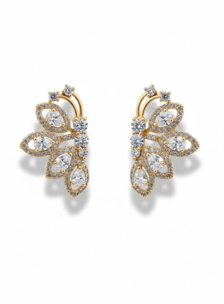 Brinco Borboleta meia asa zircônia navete Prata 925 Ouro 18 k