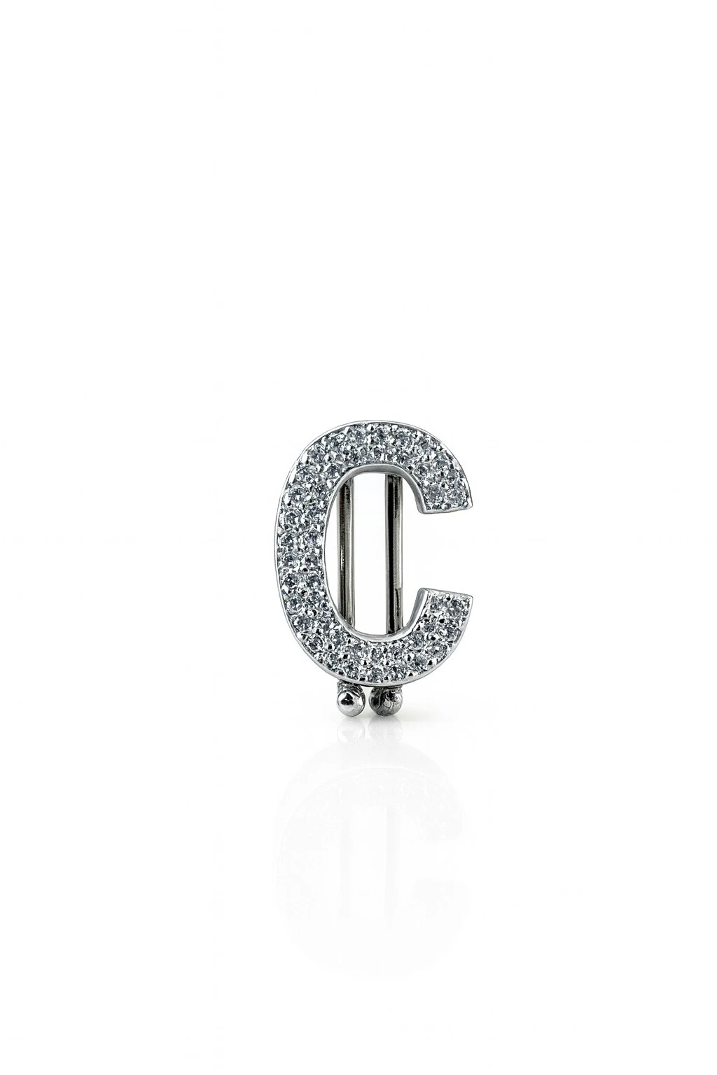 Design: Pingente tipo pin em formato da letra C, ideal para personalizar colares e pulseiras com estilo moderno e sofisticado.
