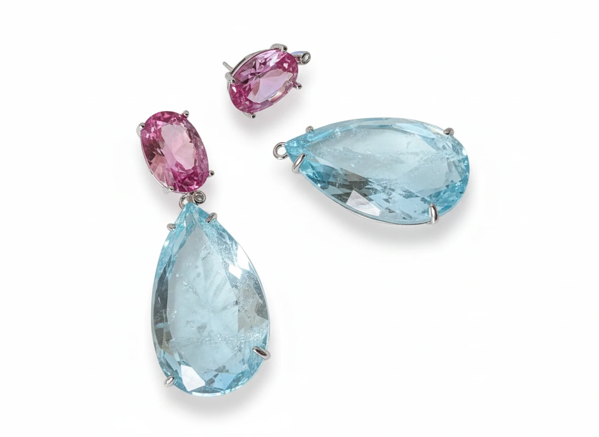 Design: Pingente em formato de gota facetada, desenvolvido para ser acoplado em brincos, permitindo diferentes composições e estilos.