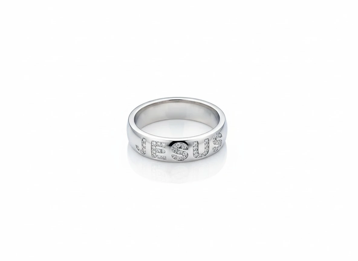 Design: Anel com aro liso e moderno, trazendo o nome “JESUS” em destaque, representando fé e elegância em uma peça atemporal.