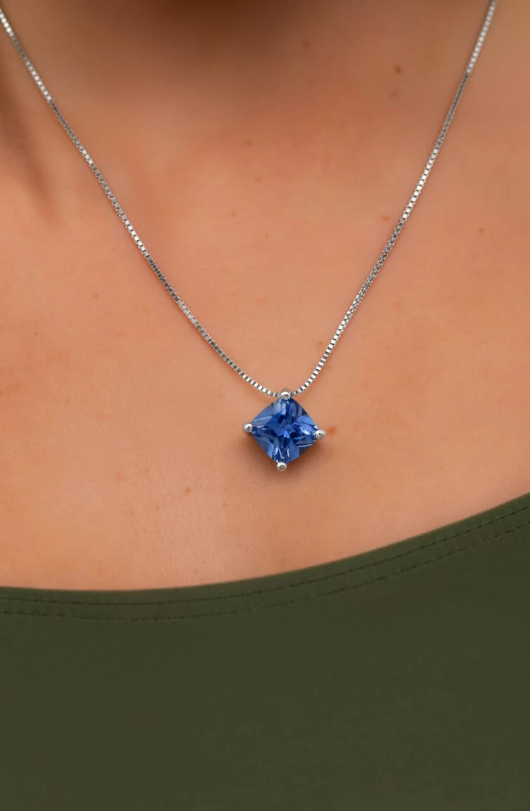 Colar delicado com corrente veneziana fina e pingente quadrado de Tanzanita Fusion em tom violeta profundo. O design minimalista e sofisticado valoriza o brilho natural da pedra e adiciona um toque de elegância atemporal.