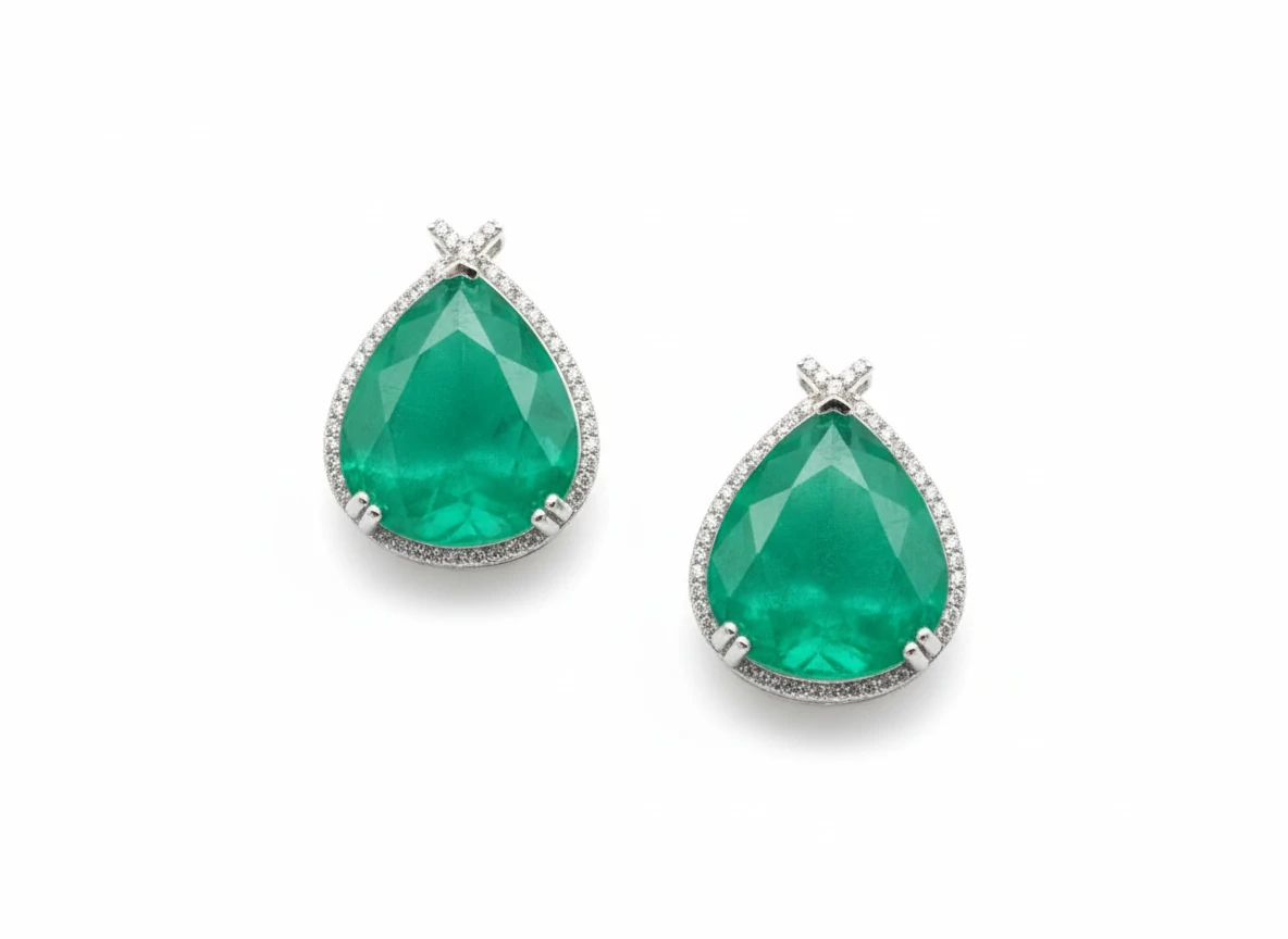 Brinco Oval renda turmalina zircônia Prata 925 Ródio