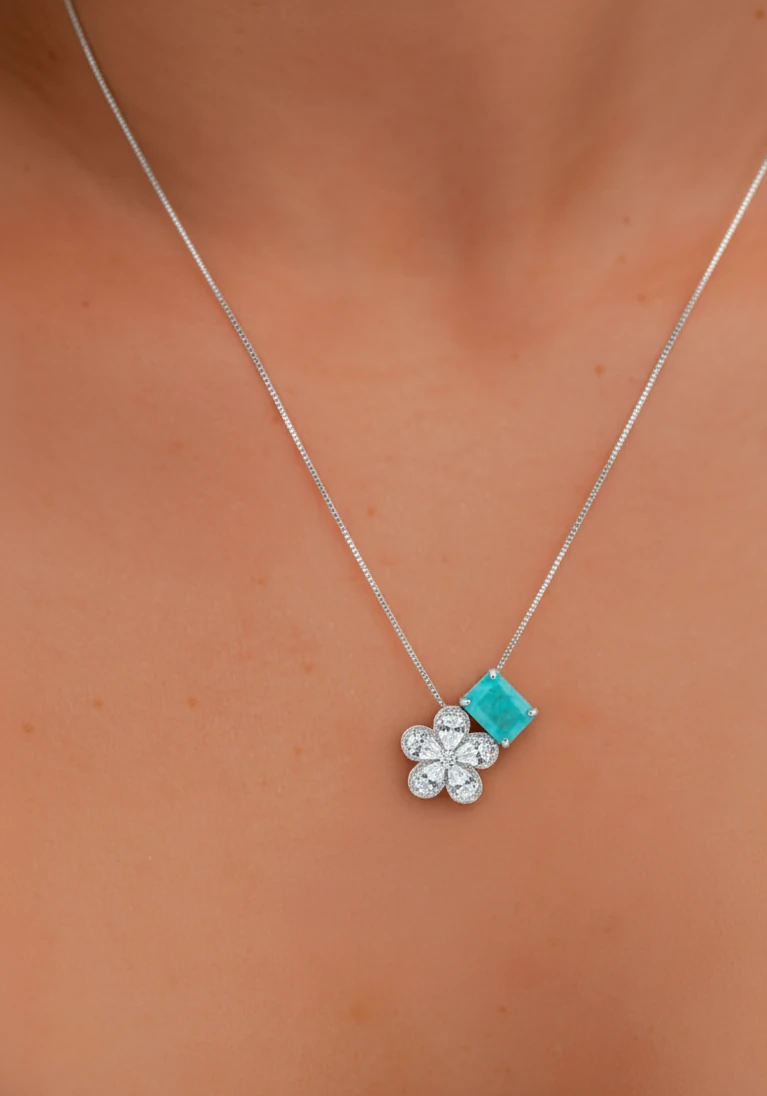 Colar Flor Moissanite 3 ct com alongador Prata 925 Rósio