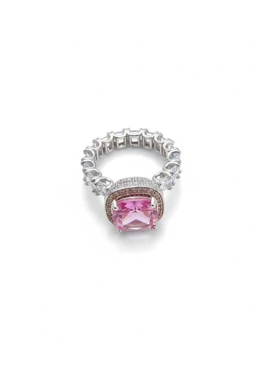 Anel Aliança inteira zircônia retangular Prata 925 Ródio