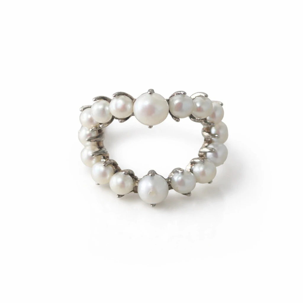 Anel Pérola Vazado Oval Prata 925 Ródio