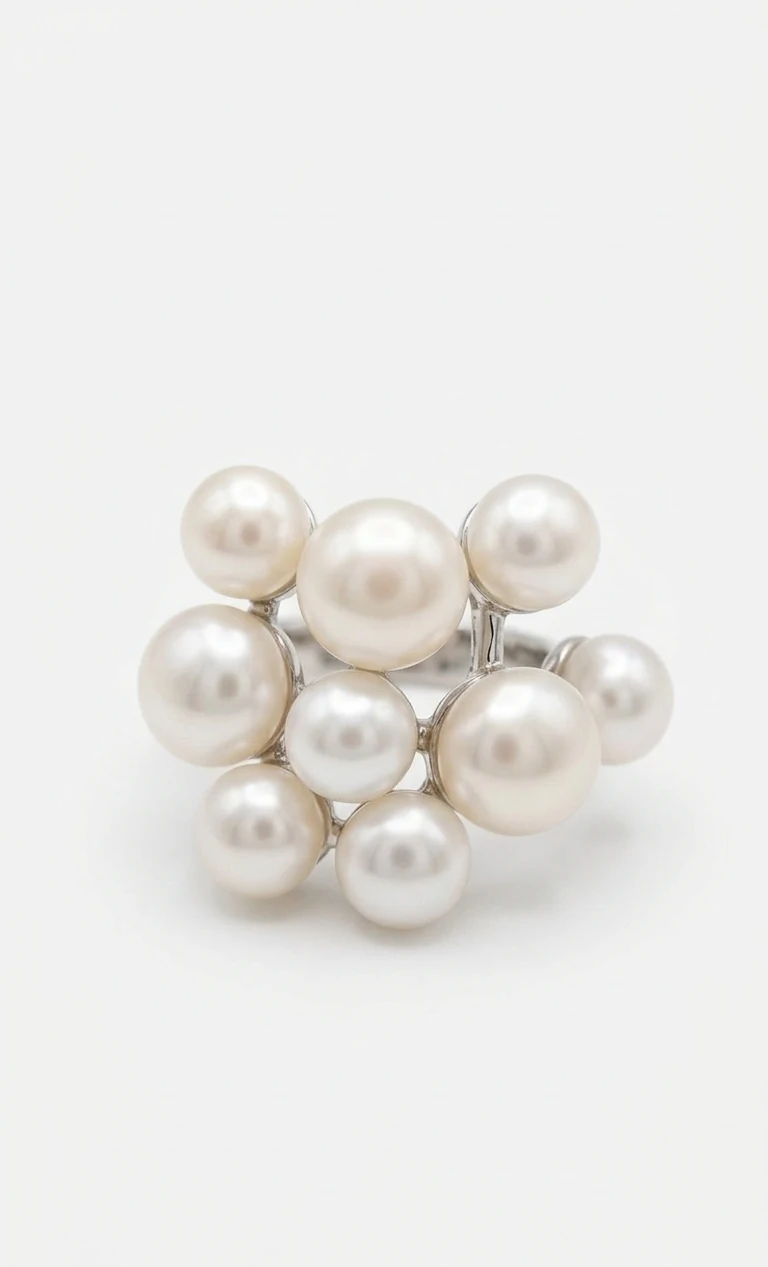 Anel Pérola Cheio Prata 925 Ródio